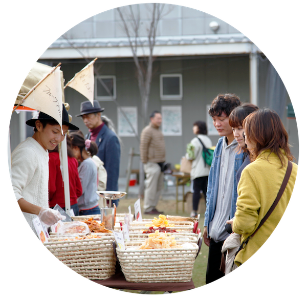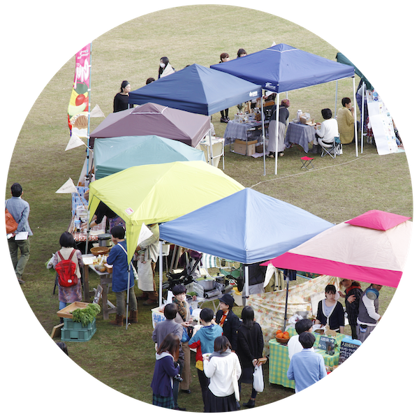 マルシェア実とは参加型のマルシェです。 「食べる」「買う」「のんびり過ごす」 だけでなく「つくる」を体験することができます。 つくることで生まれる様々な思いや発見が それぞれの形や色にたくさん実り 普段の暮らしがより豊かになることを目指します。 学生・つくり手・くらし手 全員がともにつくり合うことで はじめて完成するマルシェです。 美味しい食べ物や素敵な雑貨で ゆったりとした休日を過ごしませんか?
